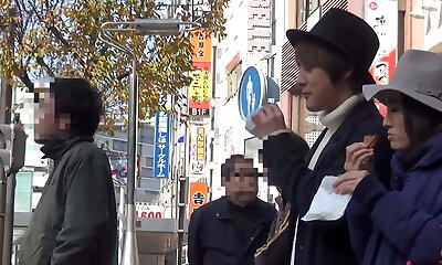 Shy Japanese female deepthroats stranger's dick while cuckold is watching