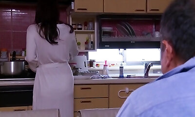 After a festive dinner lusty Japanese housewife works on 2 chisels